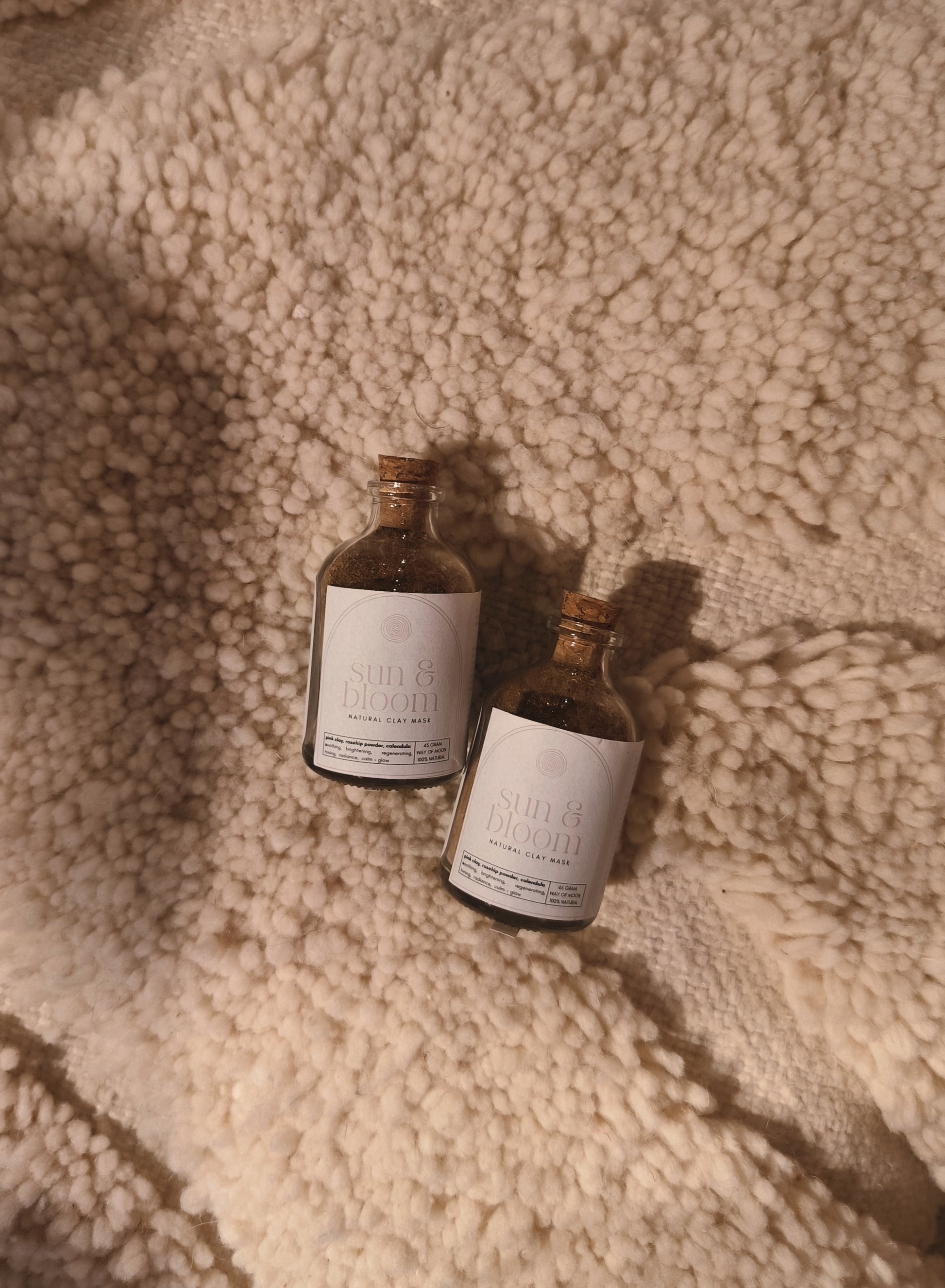 how to use: Meng 1–2 theelepels kleimasker met warm water of hydrosol tot een gladde pasta ontstaat. Breng gelijkmatig aan op een gereinigde huid, vermijd ogen en lippen. Laat 10–15 minuten intrekken (laat het niet volledig opdrogen), spoel daarna af. Sluit af met een hydraterende mist of gezichtsolie. Gebruik wekelijks als een selfcare-ritueel om de huid te reinigen, verzachten en verhelderen — en de natuurlijke glow en een gevoel van zachte vernieuwing te herstellen.