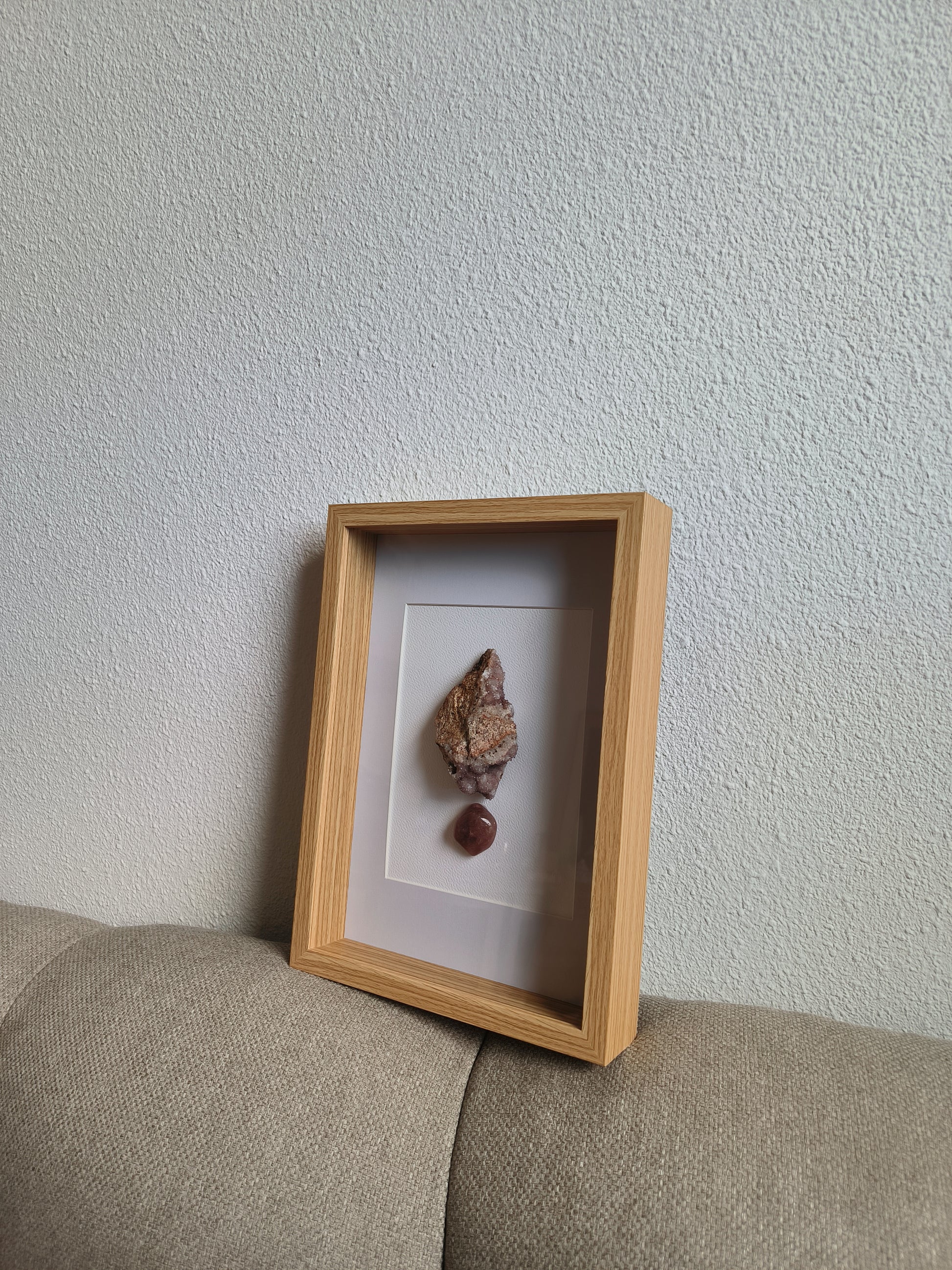 Mineraalportret met turkse amethist en aardbeienkwarts.